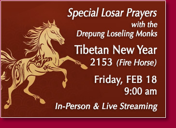 Drepung Loseling Monastery in Atlanta, GA will celebrate Losar, the Tibetan New Year 2153 of the Fire Horse.