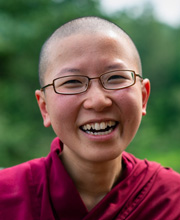 Ven. Thubten Damcho is a Buddhist nun residing at Sravasti Abbey, one of the first Tibetan Buddhist training monasteries in the United States. Born and raised in Singapore, she graduated from Princeton University in 2006 and worked as a high school teacher and public policy analyst in the Singapore government before returning to the U.S. to take novice ordination in 2013. is a Buddhist nun residing at Sravasti Abbey, one of the first Tibetan Buddhist training monasteries in the United States. Born and raised in Singapore, she graduated from Princeton University in 2006 and worked as a high school teacher and public policy analyst in the Singapore government before returning to the U.S. to take novice ordination in 2013. |